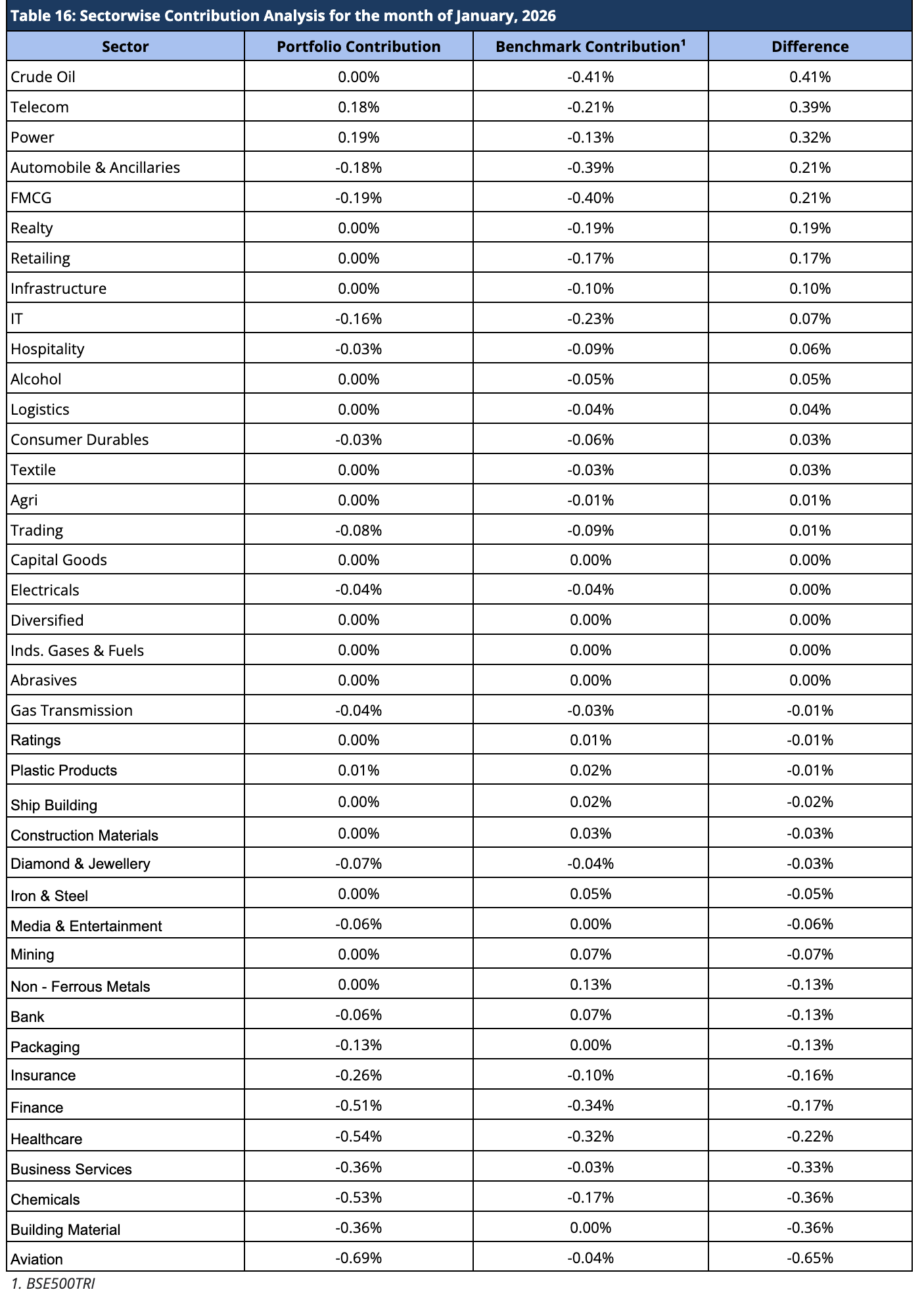 Below is the contribution analysis for the month of January 2026 (Table 16).