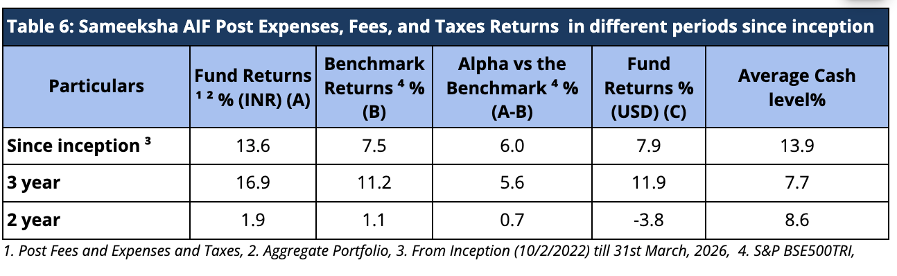 Sameeksha India Equity AIF Performance